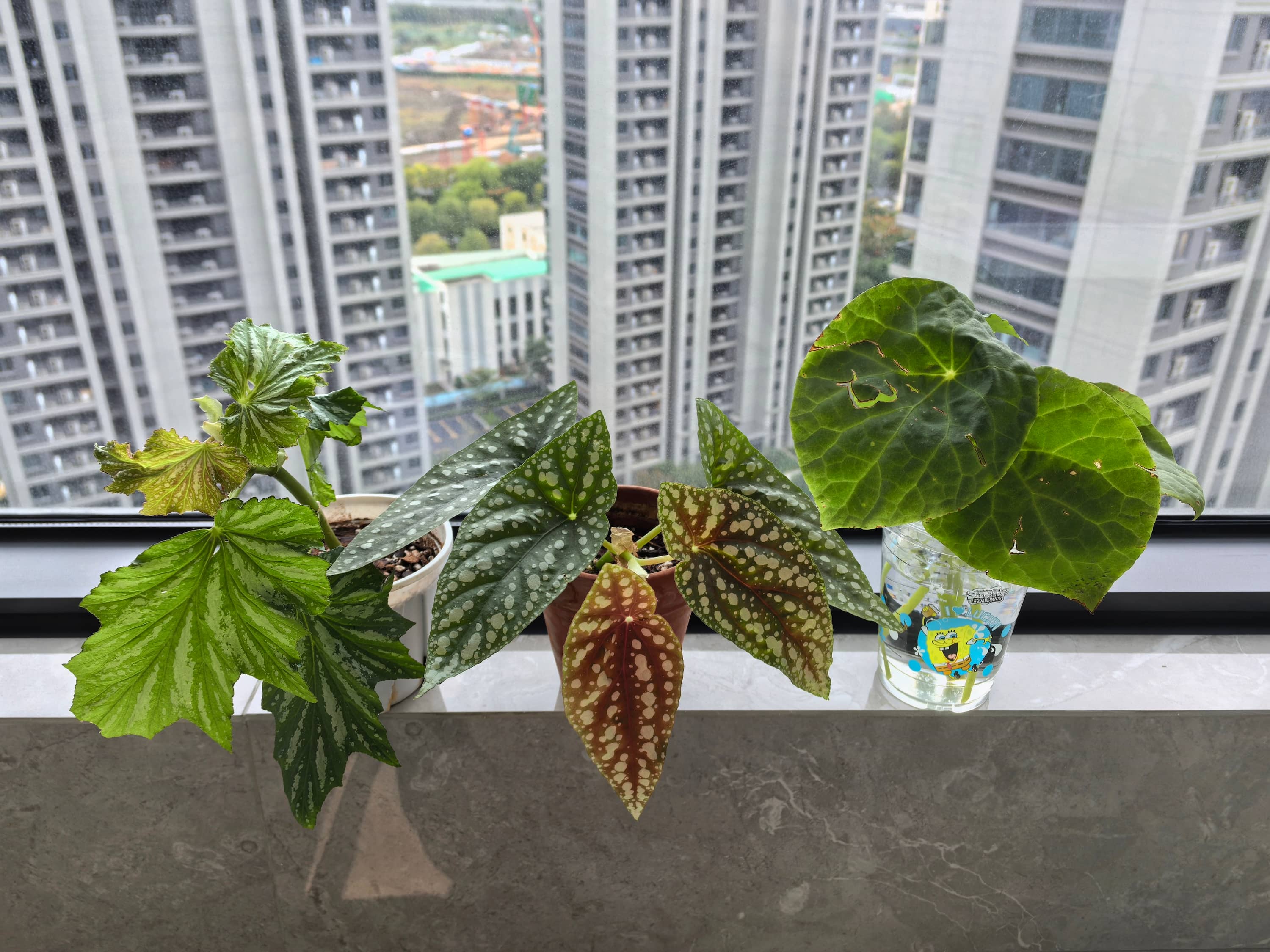 - 修剪了破败不堪的福寿秋海棠,挑了几片叶子水培,希望明年春天又能栽一盆