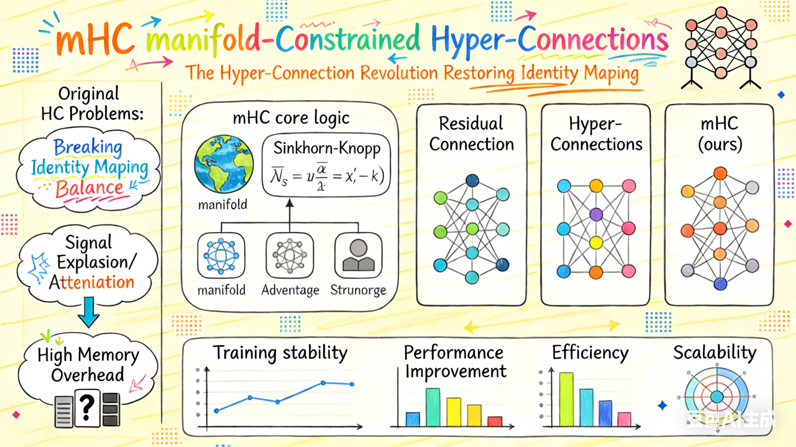 DeepSeek 假期论文又又来了:流形约束超连接,解决深度学习中训练容量 VS 稳定性的问题,结合 Chatbot 只学了点皮毛,大家直接读原论文吧